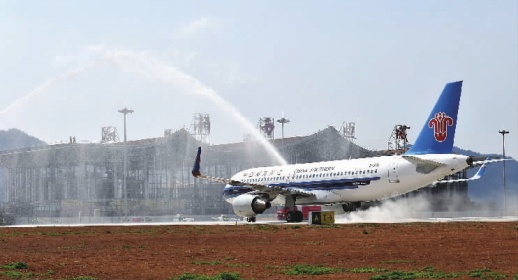 3月31日上午10时35分,中国南方航空公司一架空客A320飞机稳稳降落在湘西边城机场,标志着湘西边城机场成功实现试飞。湘西边城机场毗邻精准扶贫首倡地十八洞村,距州府吉首35公里,占地3525亩,航站楼面积1.1万平方米,可起降波音738和空客A321等机型,设计首期年进出港旅客30万人次。