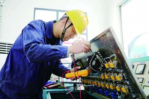 5月11日,郴州桂阳宝山矿业箕斗井塔楼里,段晓晖正和同事例行巡查操作室、低压配电房内的设备运行情况。31年前,技校毕业的段晓晖成为湖南宝山铅锌银矿机运工区电工班一名普通电工,通过不懈奋斗,成为宝山矿业为数不多的“双师型”人才。