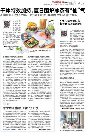 气温渐升,茶饮当道。5月21日,在长沙蔡锷南路一家名为“唐姑娘不姓唐”的甜品店中,围炉冰茶的招牌摆放在门店显眼的位置。13时,店里已经坐满了顾客,闲坐聊天,不时响起的欢笑声萦绕着整个院子。