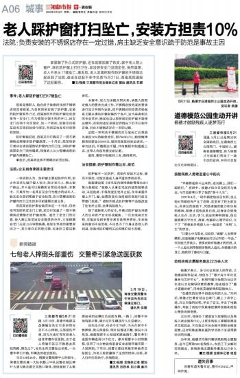 老人踩护窗打扫坠亡,安装方担责10%