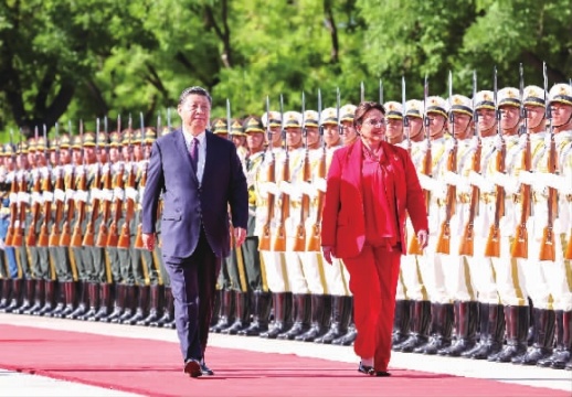 6月12日下午,国家主席习近平在人民大会堂同来华进行国事访问的洪都拉斯总统卡斯特罗举行会谈。
