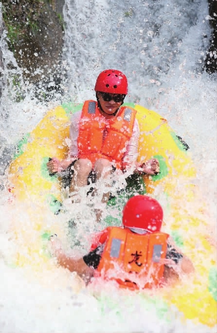 “超长版”三伏天今日正式开启。连日来,多地持续高温,众多市民和游客选择亲水消暑,享受夏日清凉。 图为7月10日,衡阳县金兰镇联龙村,游客在龙王峡漂流戏水。