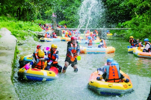 溪水清,谷深幽长。对于不少长沙市民来说,漂流基地不仅风景好,还是避暑胜地。周洛飞瀑漂流有限公司总经理肖文江介绍,仅7月9日一天,前来体验漂流的游客就有1000多人,“今年我们6月9日开漂,截止到7月上旬,这是人最多的一天。”