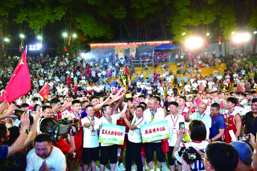 8月17日晚,怀化市辰溪县孝坪镇爱国村灯光球场沸腾了,2023年湖南省和美乡村篮球赛(村BA)暨全国选拔赛迎来总决赛。最终,郴州市永兴县马田镇队以65:61 的比分战胜岳阳市汨罗市川山坪镇队,夺得冠军,奖品是3头牛。 按照赛制,参加决赛的两支队伍将代表湖南参加全国和美乡村篮球大赛东南赛区的比赛,并向全国总决赛发起冲击。