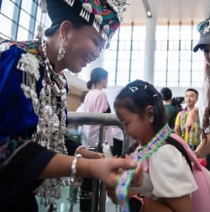 为迎接首批“空中来客”,湘西州各族民众擂起舞鼓、唱响山歌,慷慨激昂的旋律“湘西在飞”响彻云霄。