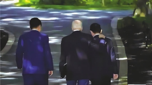 盛夏高温尚未退去,从美国总统度假地戴维营散发出的冷战气息让世界顿觉寒意。当地时间8月18日,美国、日本和韩国领导人在此会晤,宣称要加强三国在军事等领域合作,并蓄意散布所谓“中国威胁”的谎言。在美国主导下,三国各怀心思,相互利用,打着“维护安全”的旗号构建封闭排他的地缘政治“小圈子”,意在加剧对立、损害地区战略安全,危及亚太和平、稳定与繁荣。