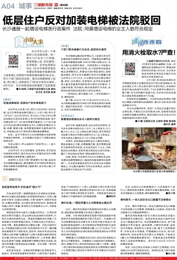 长沙市天心区一个老居民小区加装电梯,同一单元14户业主11户同意,新电梯装上后,区住建局、区资规局、区市监局联合作出《长沙市既有多层住宅增设电梯联合备案和竣工验收表》。没想到不同意安装电梯的3名业主,把三个部门起诉到法院,请求法院撤销竣工验收,停止施工。法院驳回了3名业主的诉讼请求。8月25日,长沙铁路运输法院通报了这起典型案例。