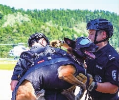 9月19日,长沙市公安局特巡警支队第三特警大队开展直升机索降实战训练,警犬与训导员在高空速降、悬停、落地扑咬等训练中专注配合,积极认真。随着“下降”指令,特警队员们先后起身,面对舱门,携35公斤重的警犬从直升机上迅速索降,快速进入现场。从30米左右的高空下滑到地面,并立即进入作战模式,平均每轮携犬索降用时不到5秒。参与训练的是长沙市公安局特巡警支队今年第一批选拔出的3名警犬训导队员,他们经过一周以上的携犬理论培训、飞行体验、平地索降等科目训练,19日开展空中携犬索降训练。 ■文/视频 三湘都市报全媒体记者 杨洁规 王智芳 通讯员 胡敏 摄影报道 |