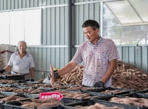在陕西渭南大荔县的大寨村,当地的沙土地非常适合种植板栗红薯。2021年,受洪水影响,村民的红薯滞销,村主任贾壮志试着在拼多多上开店,帮村民卖红薯,没想到成功为村里的红薯打开了新销路。三年来,贾壮志已经为大寨村以及周围的村子卖出了800万斤红薯。今年7月,当地的红薯再次迎来丰收,贾壮志已经带领村民累计卖出了20万单,单月销售额超过120万,并且就地解决了村民的就业问题,村里的宝妈、老人通过理货、打包的日均收入就能达到二三百元。