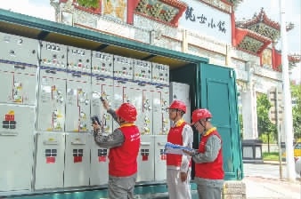 不远处的电力“红马甲”时而穿梭711时光小镇保电点,时而走街串巷检查电力设备运行状况。项目启动以来,国网郴州供电公司全力服务项目建设,确保了项目电力充足、用电无忧。