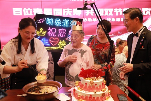 三湘都市报9月27日讯 今日,湖南湘江新区望岳街道八方社区举行了一场主题为“百位寿星同庆寿 共迎双节欢”的团圆活动,约100名80岁以上的老人欢聚在映像潇湘市府店,共迎中秋,喜庆国庆。
