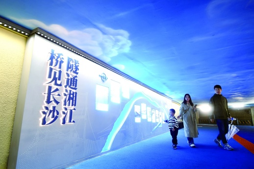 10月7日,市民经过长沙市芙蓉广场地下人行通道。该地下通道经过一个半月的施工改造,焕然一新。两侧墙面展示了长沙从古至今的风貌变迁,行人迈步其间,仿佛置身“时光隧道”。