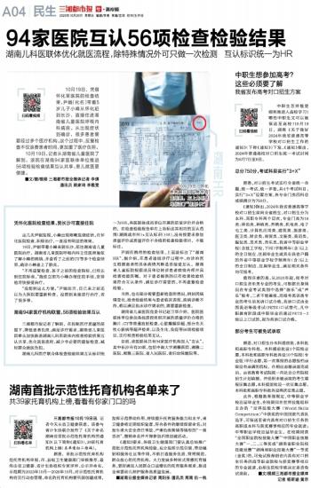 湖南94家医疗机构联盟,56项检验结果互认
