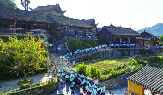 在“精准扶贫”重要论述提出10周年之际,作为精准扶贫首倡地的湖南,锦绣山河如画美。花垣县十八洞村秋色迷人。近年,十八洞村通过现场教学、拓展教学、听微党课、观看视频等多种形式,帮助研学青少年深入认识和感悟精准扶贫首倡地的精神内涵,已成为研学旅行的热门目的地。图为11月1日,学生在花垣县十八洞村梨子寨参观。湖南日报全媒体记者 辜鹏博 摄