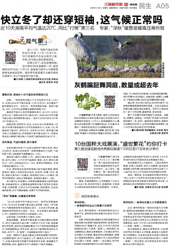 湖南省气候中心发布的数据也显示,近10日(10月22日至31日),湖南全省平均气温达20℃,位居1961年有完整气象记录以来同期的第3高位,仅次于2009年的20.3℃和1977年的20.1℃。