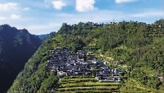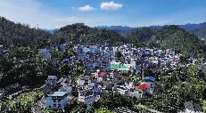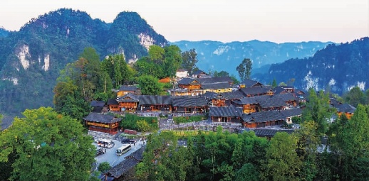 11月1日,花垣县双龙镇十八洞村,夕阳余晖下的梨子寨与青山交相辉映,景美如画。