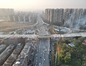 三湘都市报12月4日讯 12月4日,在星沙联络线与万家丽路交会处,随着最后一块桥面板安全平稳地落位到钢梁上,标志着由中铁五局承建的万家丽路快速化改造北延线工程主线主体工程完工。