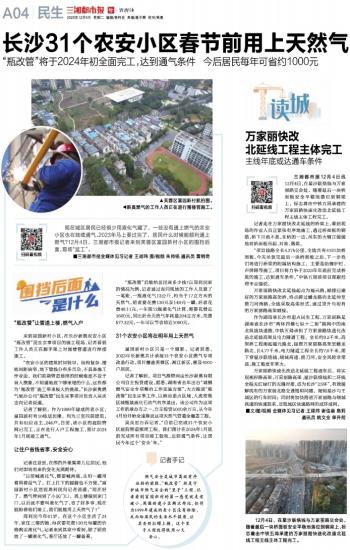 长沙31个农安小区春节前用上天然气