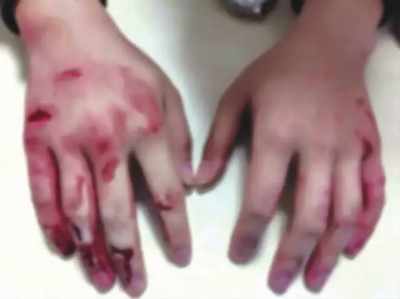 12月8日,汤益鑫的双手拆线。主治医生说,汤益鑫的手恢复正常还得再过几天,还会留下疤痕。