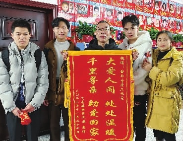 “谢谢叔叔,谢谢您帮我找到亲生父母,今天特地带着家人来感谢你!”12月12日,胡晓威赶到长沙,送上锦旗,感谢帮助他的好心人。
