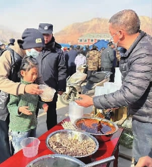 “凌晨从兰州出发,4点多抵达大河家镇,上午10点左右出了第一碗面。”来自兰州的牛肉面馆老板马忠明说,他们面馆共计15人不到两个小时提供了2000多份牛肉面,后续面粉、牛肉等原料正在不断往灾区运送。