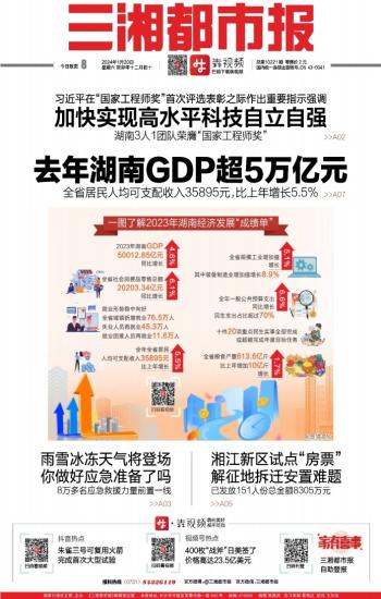去年湖南GDP超5万亿元