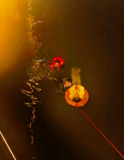 “我们赶到时,人已经在水里了,当时情况十分紧急。”万凯说,落水女子所在的位置正是湖中心,离岸边15米距离,身体全部浸入水中。万凯试图用救生圈系上绳索抛向女子,但任凭岸上人怎么呼唤,对方都对抛至一旁的救生圈毫无反应。没来得及细想,万凯迅速穿上救生衣跳入湖中,游向湖中心女子所在位置。