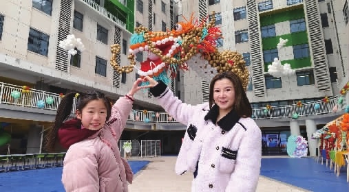 30米长的金色龙身,龙口含珠,红色龙尾微微摆动,周围还有白云围绕……26日,长沙市岳麓区博致学校的孩子们一踏入校门,便惊呼:“好帅!我要跟它合影。”记者看到,该校校园空中有一条由3万个气球组成的金龙在空中腾飞,这是学校百余名老师纯手工打造的一条长达30米、高3米的金龙,希望新学期通过这条腾飞的巨龙,祝愿所有孩子新的一年龙翔万里,乘风而上。