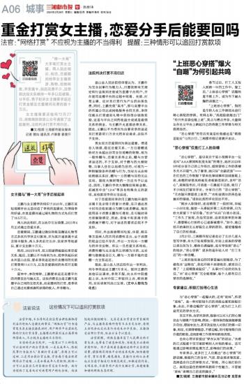 重金打赏女主播,恋爱分手后能要回吗