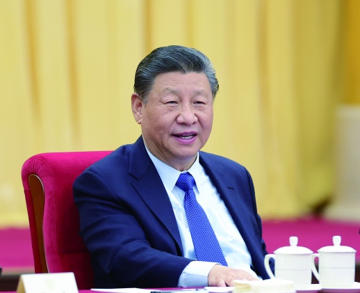 3月6日,中共中央总书记、国家主席、中央军委主席习近平看望参加全国政协十四届二次会议的民革、科技界、环境资源界委员,并参加联组会,听取意见和建议。新华社 图