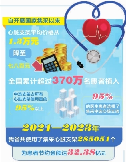 湖南省医保局相关负责人表示,越来越多心肌梗死患者选择植入集采中选的支架。据统计,2021—2023年我省共使用了集采心脏支架285051个,为患者节约金额达32.38亿元。