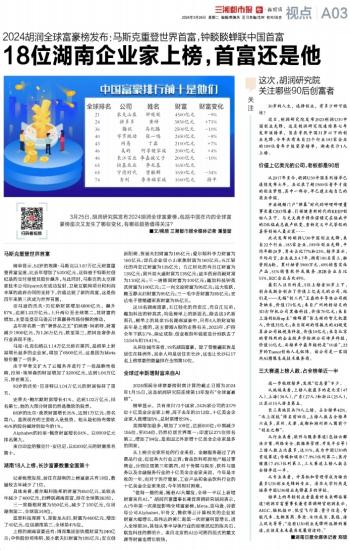 三一梁稳根财富为550亿元,减少了100亿元,位居湖南第二、全球第349位。