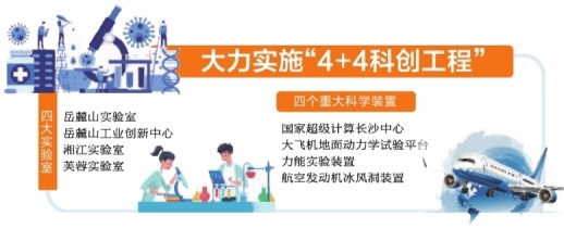 大力实施“4+4科创工程”,岳麓山实验室全面建成投用,岳麓山工业创新中心力争取得10项左右关键技术突破,湘江实验室完成总部入驻,芙蓉实验室创新医疗技术研发;国家超级计算长沙中心服务用户1000个以上,大飞机地面动力学试验平台争取纳入国家重大科技基础设施布局,力能实验装置、航空发动机冰风洞装置助力产业创新。