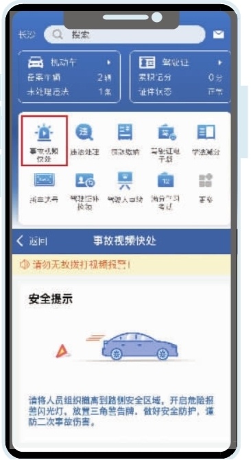 在长沙街头开车发生轻微交通事故,不用在原地等待交警了,掏出手机打开“交管12123”APP,接警人员远程取证后就能将车开走,这就是轻微交通事故线上视频快处业务,目前长沙视频快处事故平均处理时长只有5分钟。