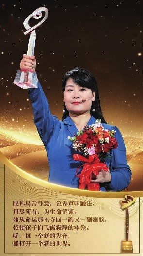 “希望能用自己的爱和学识,让每一位特殊的孩子从无知到掌握未来,走向社会,自食其力。”时间回到2015年9月11日。当天,荣获全国“党和人民满意的好老师”的刘玲琍,手捧奖杯回到了学校,受到师生们的夹道欢迎。