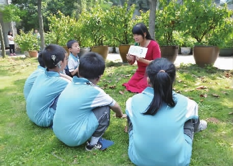教儿歌时,刘玲琍发现学生童童在发“船儿”音时,“ch”的声音难以发出。她走到童童身边,做示范发音。经过五六次示范练习,孩子终于发出了较为标准的“ch”的发音。