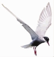 三湘都市报记者了解到,须浮鸥又名灰翅浮鸥,体长25厘米,嘴、脚是淡紫红色。冬夏两季,这种体型较小的浅色燕鸥还会换装,夏季,羽额至头顶为黑色,像戴了一顶“小黑帽”;冬季,羽前额为白色,头顶至后颈黑色。