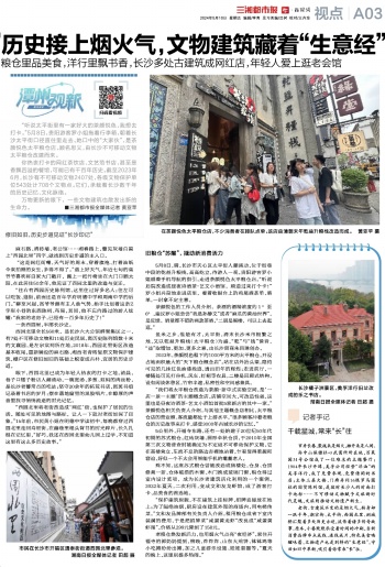 孙中山保镖杜心武寓所所在地,百果园31号公馆成了一位难求的主题餐厅;1904年长沙开埠,美孚公司经营“洋油”的美孚洋行,成了免费参观、免费借阅的书店;主体三层大楼、门廊并列16根罗马圆柱的国货陈列馆,是彼时长沙人的时尚打卡地标……不可移动文物赋予文旅新时代灵魂,文旅则推动文物遗产新生。