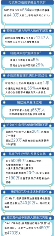 2023年美国的人权状况继续恶化。在美国,人权朝着日益两极分化的方向发展。与占据政治、经济和社会支配地位的少数人相比,大多数普通民众越来越被边缘化,基本权利和自由被虚置。