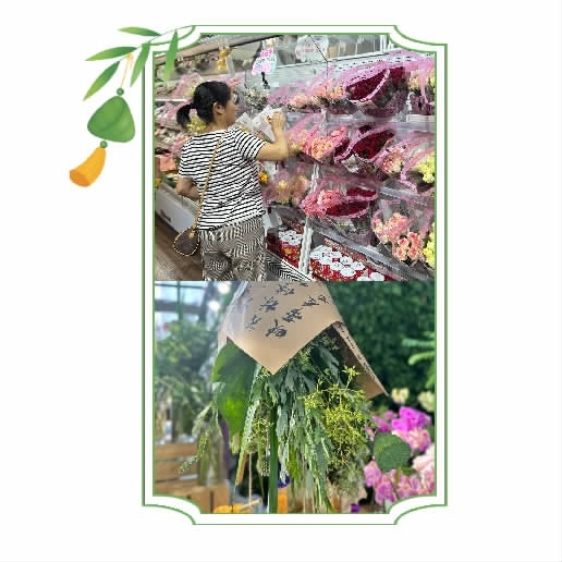 “艾草花束接受定制。今天没货了,需要提前一两天预订。”长沙市开福区结香花语花店店员介绍,艾草花束有59元、79元、89元、159元、189元5个价位,单价79元的艾草花包含艾草、菖蒲叶、葫芦、香包、书法卡片等,“艾草用于驱虫驱邪,葫芦谐音‘福禄’寓意招福和财运,香包有纳福、平安之意。”