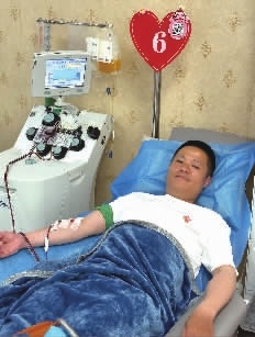当时献血者们大多献的全血,每半年才能献一次,曹科一直坚持。“后来,可以献血小板,一个月可以献两次。”今年是曹科献血的第20年,这20年里他一共献血233次,献血总量达76300毫升,约20个成人的全身总血量。