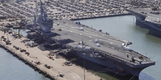 “艾森豪威尔”号航母是美国海军远洋战斗群的核心力量之一,以它为核心的战斗群通常由4至6艘巡洋舰、驱逐舰、潜艇和补给舰只构成。