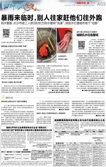 6月24日发生的一幕,单购军记忆深刻。当天,长沙暴雨突然“发威”,收到预警信息后,早上6时不到,单购军就和同事们开始工作。