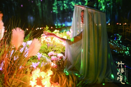 益阳桃江竹海的沉浸式楚风竹宴剧场《竹海幻境》也在6月5日超前试演,将于7月正式开城纳客。“《竹海幻境》把‘宴+剧+演’深度融合,让幻境变得可见、可饮、可食、可感、可敬,进而重构中国在地方的文化艺术空间和情感表达。”总导演李彦介绍,对镜当空,吟诗赏月,桃江万亩竹海打造了一个以《楚辞》为价值表达的风雅美学新样式。