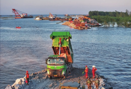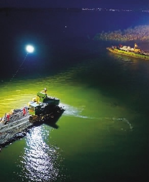 7月7日,华容县团洲垸决口现场,抢险力量正采用船抛石料、双向“进占”、碎石和块石联合填埋等方式,加快封堵进度。截至7日21时,决口封堵累计达101.6米。