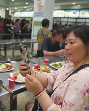 7月7日,转移安置的群众吃午餐时拍视频发送给家人。
