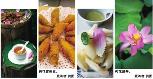 黄先生向记者介绍:“我们的荷花宴总共有13道菜品,其中最受欢迎的是香酥荷花。”用面包糠将荷花包裹油炸,再依次摆盘组成荷花的形状,入口酥脆香甜,淡淡的荷花香气在嘴中迸发,宛如置身荷塘之中。