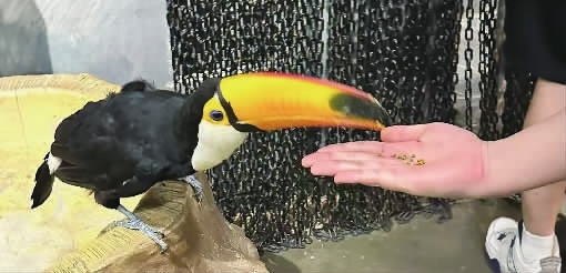随着“Zoo Walk”的流行,动物园不再是传统意义上的游玩场所。李嘉鑫告诉记者,逛动物园不仅能够令人身心放松,各种科普与讲解也让她更好地了解地球村的其他居民。在她看来,让更多人了解、关爱、保护动物,也是年轻人逛动物园的意义所在。在饲养体验区,李嘉鑫参与了动物喂食,轻轻接近一只正低头觅食的巨嘴鸟,将食物放在手心给它喂食,“整个过程就是在建立信任与友谊,让我有一种责任感。”