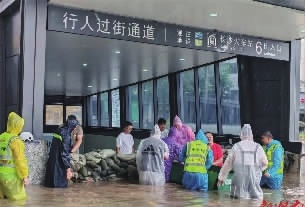 为了应对强降雨,长沙火车站综合事务中心全员上岗,发动200余名干部、巡逻队员、治安二队和环卫所人员,紧盯重点区域,在火车站西广场南、北地下通道出入口处用200余包沙袋垫高,用挡板阻隔,形成坚固的防水墙。同时组织50余名“红火炬”志愿服务队队员为乘客提供帮助。