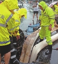 同时,长沙市应急、城管、住建和市政等部门也紧急部署抽水排涝,应急救援。在五一大道曙光路口、五一大道晓园路口、五一大道车站路口、高家坡路京珠辅道口,芙蓉区市政出动车辆设备42台次,人员135人,第一时间处置积水。